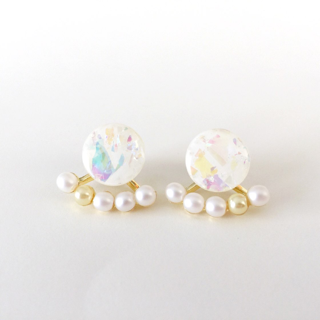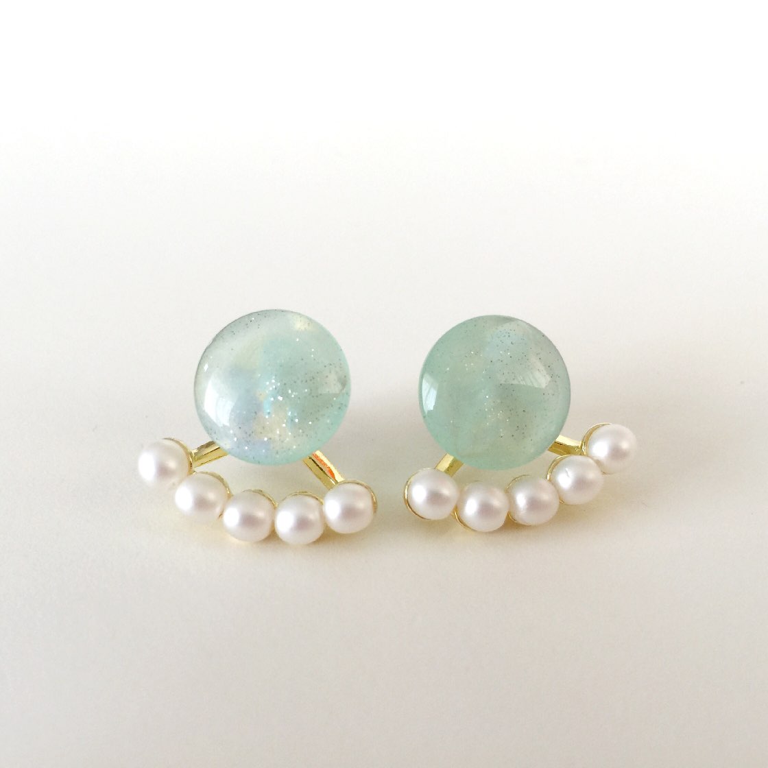 マットなビーズやパールのピアス。