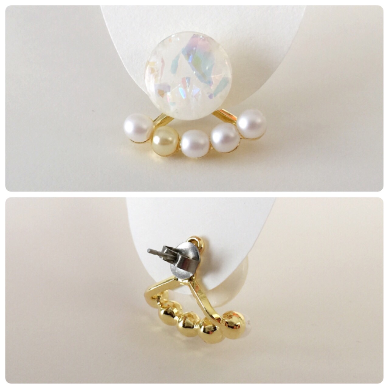 キャッチにも長さ違いの飾りが付いていて、
