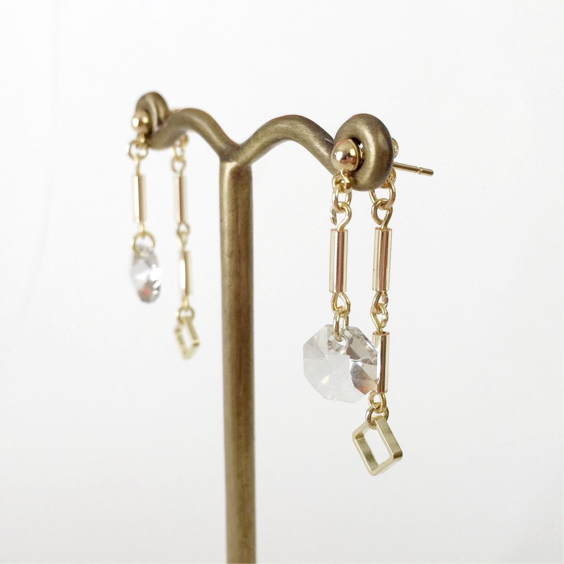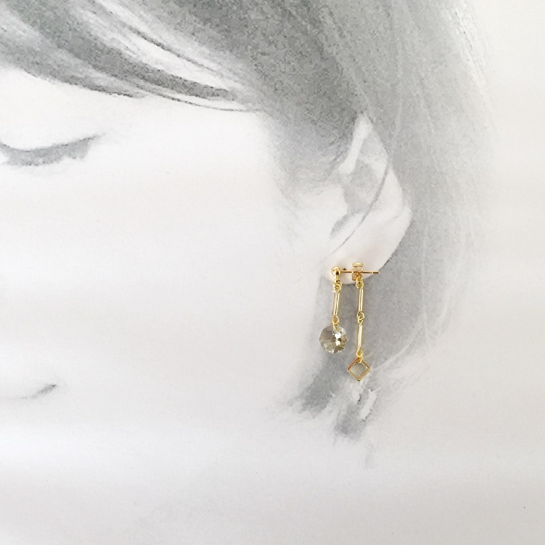 あえて片耳は控えめなスクエアデザインにしました。