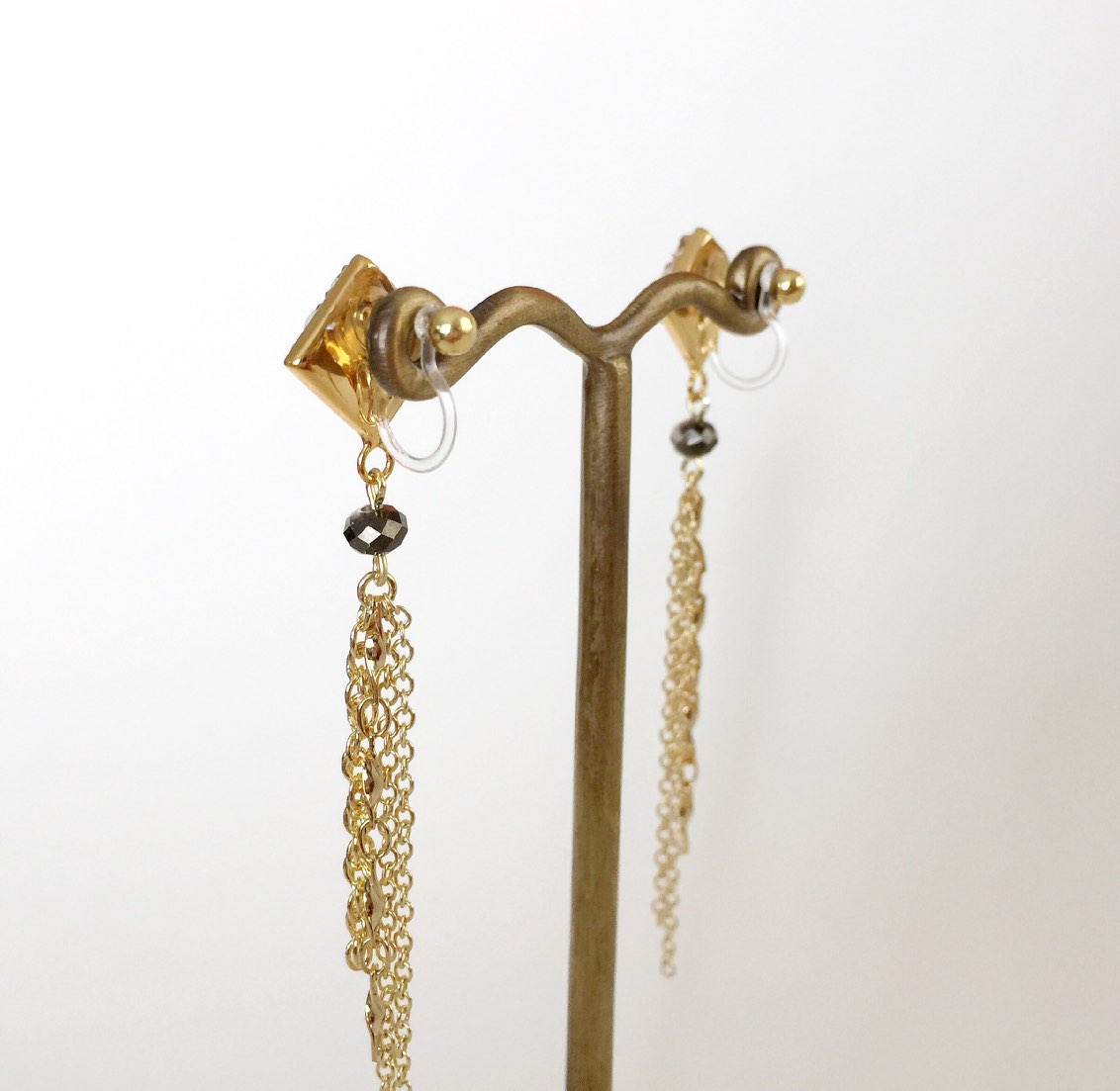 先日デビューしました、ピアスキャッチについた飾りが揺れる