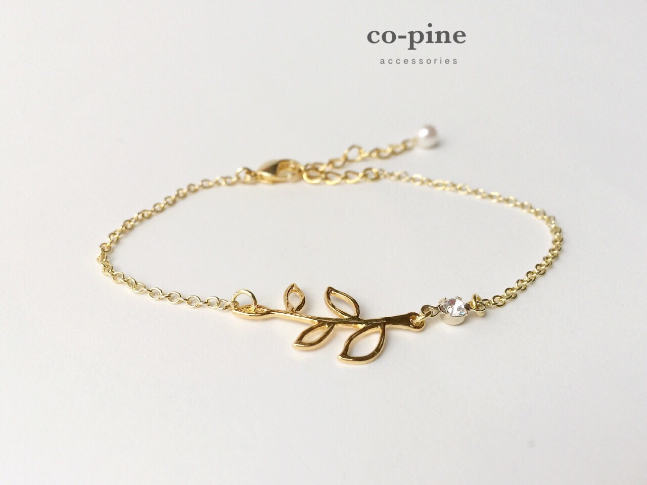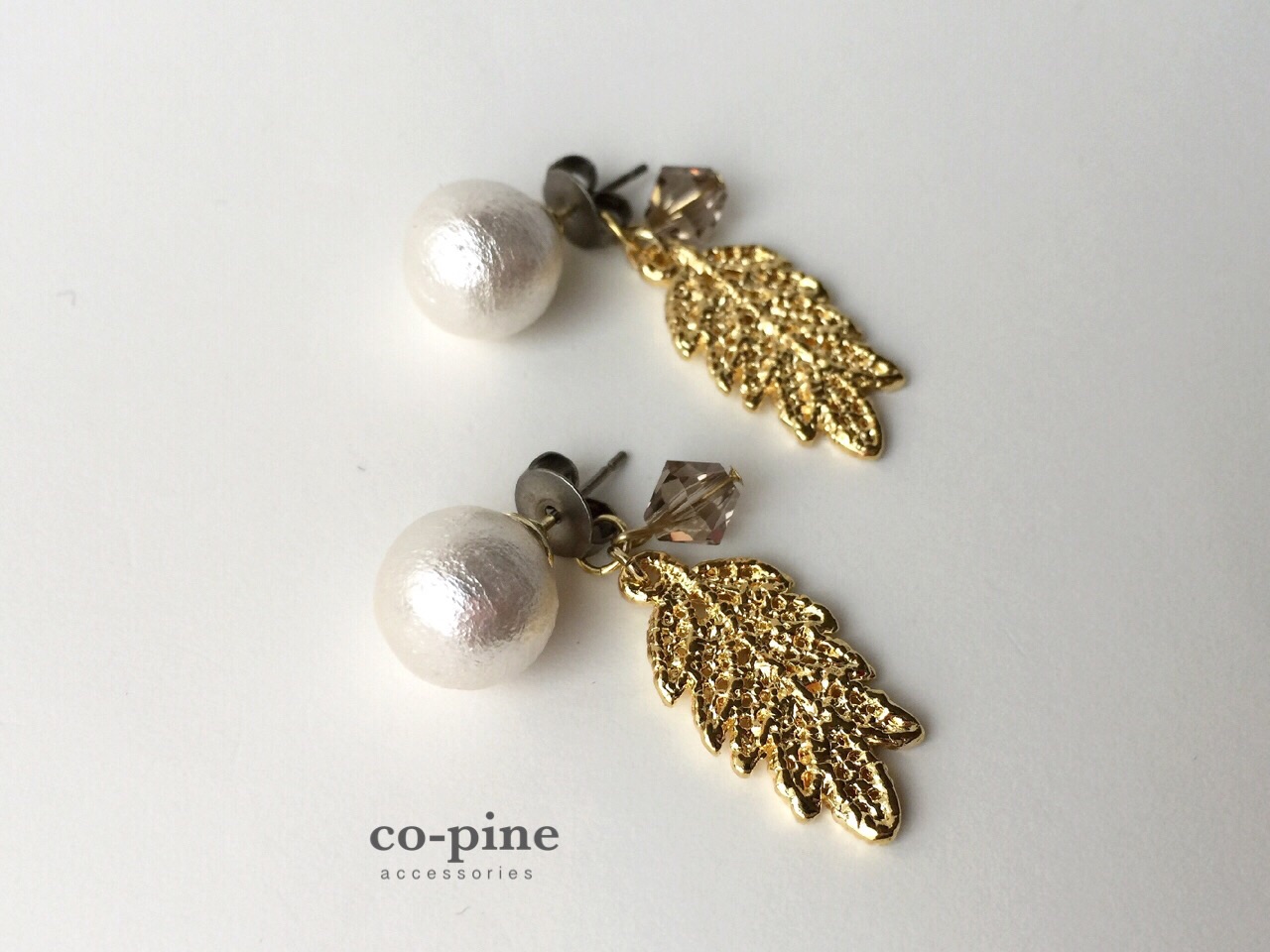 コットンパールにゴールドカラーのリーフ。王道の最強コンビです。