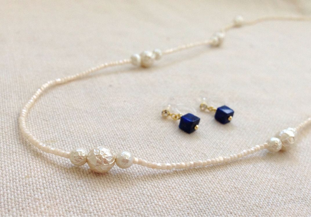 金属アレルギーの方からネックレスとイヤリングのオーダーを頂きました。