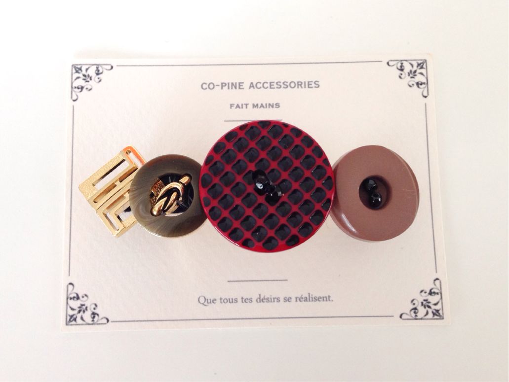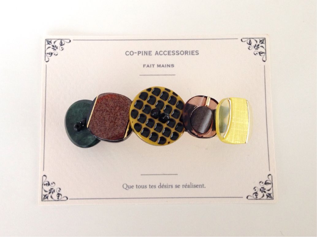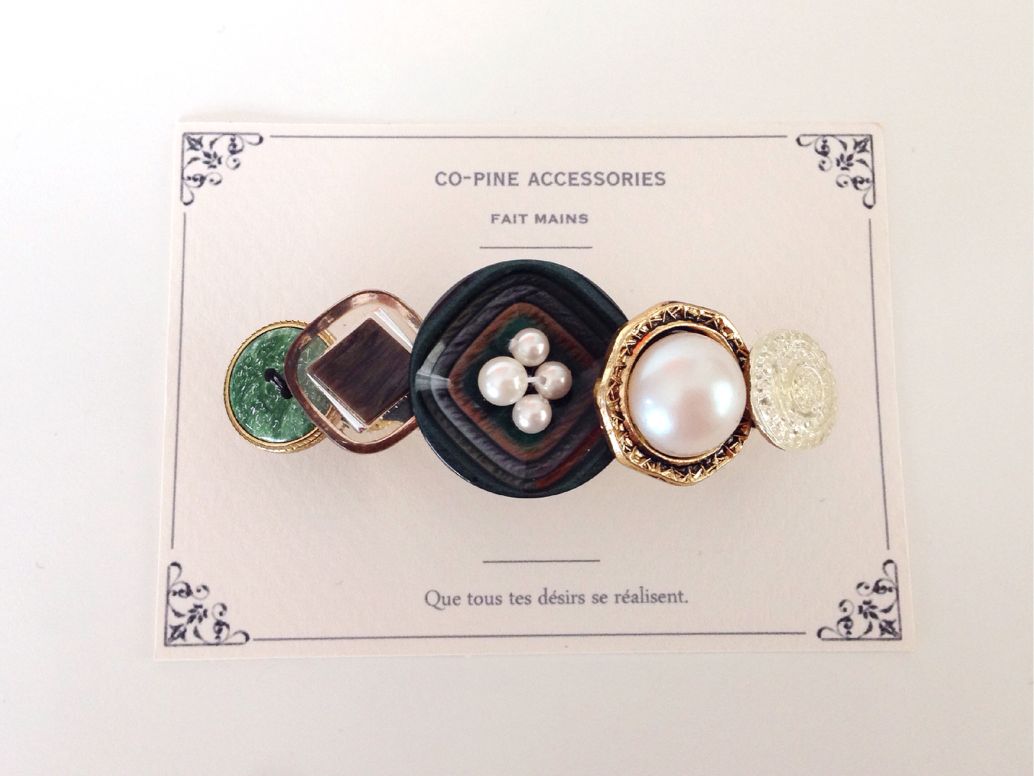 続いては、ヘアスタイルのポイントになりそうなボタンのバレッタ。