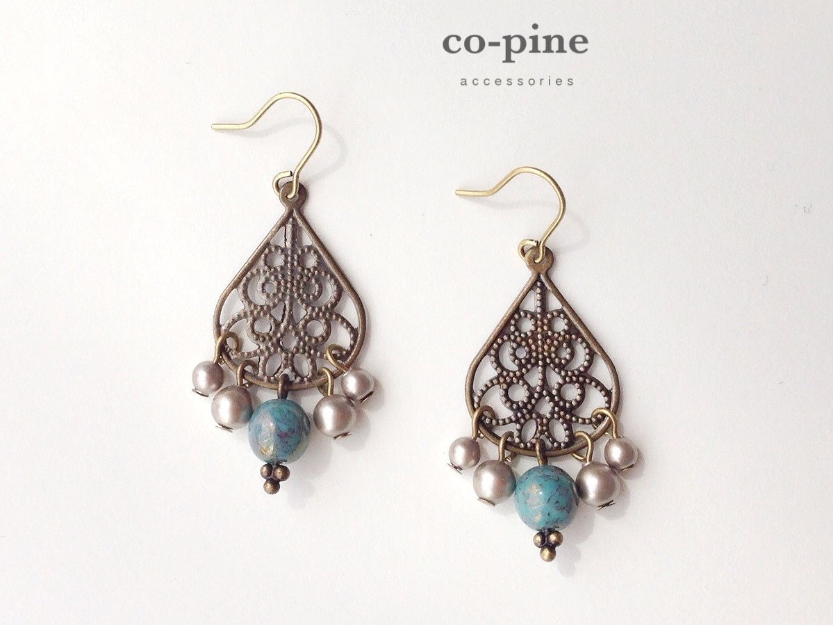 レーシーな雫型モチーフの渋めのピアスなど、、