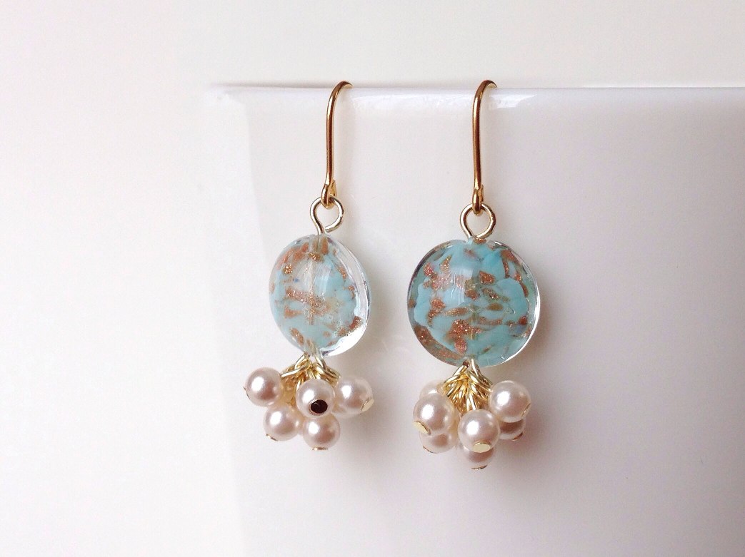 ガラスのビーズは、ゴールドカラーのラメのマーブル模様がとても綺麗です。