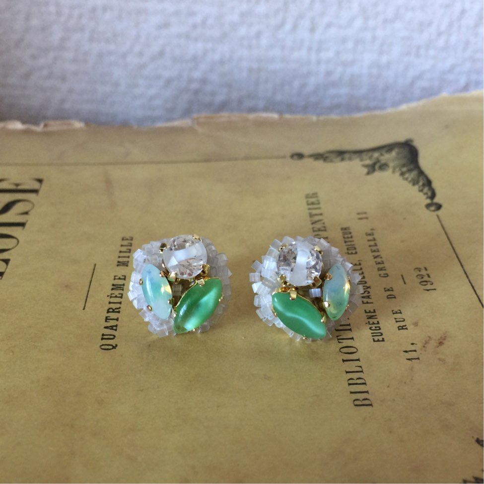 ビンテージパーツを使った華やかなピアスです。
